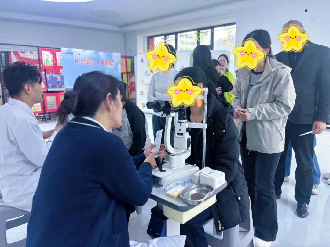 活动现场,榆林爱尔眼科医院的医护人员们耐心细致,为老师们提供了一系列针对性强、专业度高的眼健康检查项目,旨在全面关注老师们常见的用眼问题:· 电脑验光: 快速、准确地检测老师的屈光状态,了解是否存在近视、远视或散光等问题,以及视力变化情况,为日常用眼疲劳提供科学参考。· 裂隙灯检查: 这是眼科的“显微镜”,能够深入检查眼前段健康状况,包括结膜、角膜、虹膜等,帮助筛查干眼症、结膜炎、白内障等眼部疾病隐患。· 干眼雾化熏蒸: 针对老师们普遍反映的眼睛干涩、疲劳等问题,特别设置了此项服务。温润的雾气轻轻熏蒸双眼,能有效缓解眼干、眼涩、刺痒等不适,让老师们在忙碌的间隙享受一刻难得的放松与舒缓。· 清洗眼镜: 服务于细节处见真心。医护人员还贴心为老师们提供了专业的眼镜清洗服务,让大家的“第二双眼睛”焕然一新,视野更加清晰明亮。