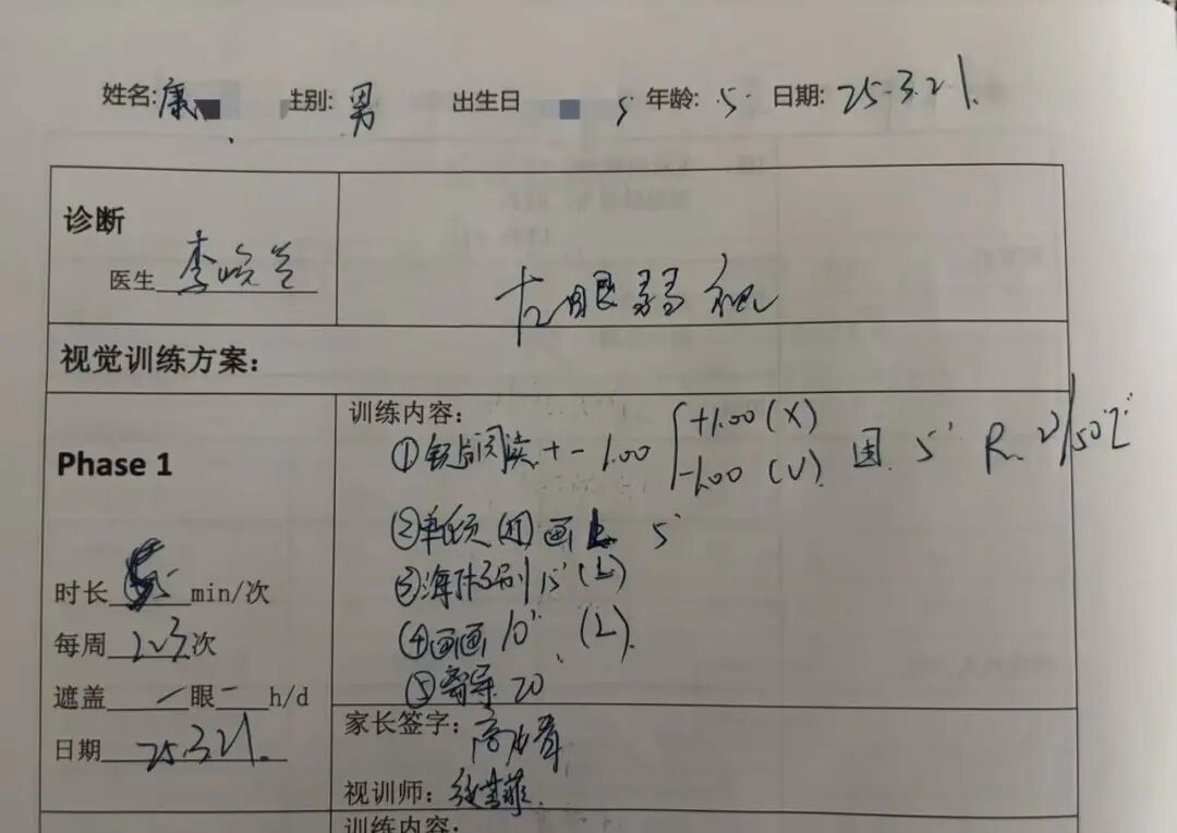 针对小康的情况,医生为他配制了合适的眼镜,并制定了系统的弱视训练方案。令人欣喜的是,在坚持完成两个疗程的训练后,小康的视力有了明显提升,恢复到了正常1.0的矫正视力!